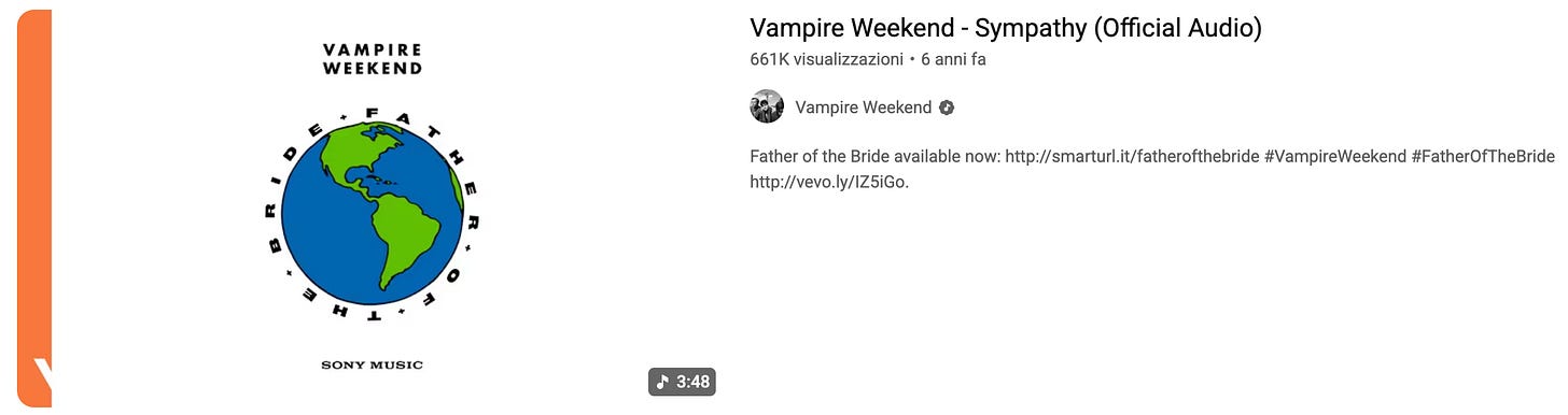 Last but not list, da ballare: Sympathy dei Vampire Weekend (incredibilmente consigliatami da Ravazzani). Non facile e oscura, ma se ci entri - aiutato da qualche shottino di tequila - è fatta.